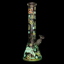 Turn off the lights and get groovy with Cheech & Chong® Glass' first glow-in-the-dark release. This tie-dye beaker base water pipe features primo flower decals, perfect for any dye-hard fan. Includes a built-in ice catcher so you can keep pulling and stay mellow for longer. Can you dig it?