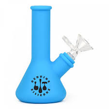 LIT Silicone 5" Tall Blue Beaker Water Pipe W/Glass Pull-Out